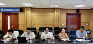 Các chuyên gia đến từ Cục cấp thoát nước thành phố Kitakyushu – Nhật Bản (Từ phải sang: Ông Hayashi Yusuke – Giám đốc; Bà Thuý – phiên dịch viên; Ông Hata Yasuyuki – Phó Giám đốc; Ông Sato Yuichiro – Nhân viên cao cấp; Ông Sasaki Shinichi – Nhân viên cao cấp.